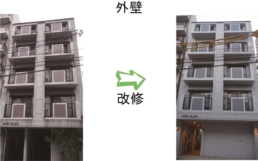 老朽化が進んでいく建物の快適性や安全性、耐久性を改善し、それらを向上させ、建物を再生する工事を行います。