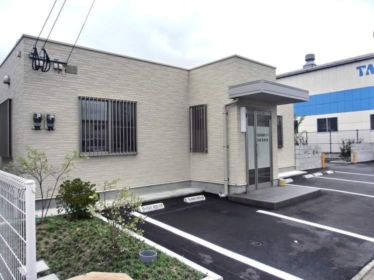 SHタイプの事務所です。サッシには格子を付け防犯性を向上させ、外壁もおしゃれに仕上げています。SHタイプはプ鉄骨の柱が見えないスマートなデザインが特徴です。