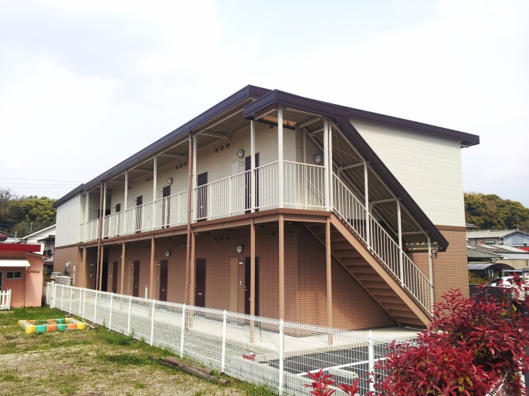 SHタイプの社員寮です。施工期間は約3ヶ月。 ワンルームタイプのお部屋が1階10部屋、2階10部屋の建物です。お施主様、入居者の社員様にとって満足のいく仕上がりをモットーに取り組んでいます。