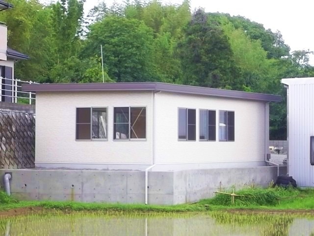 一般的な事務所SHタイプです。屋根廻り・外壁・サッシなど外観は標準色を使用しています。内装は床タイルカーペット、天井・壁はクロス仕上げとしており、事務スペースとして快適な作りになってます。