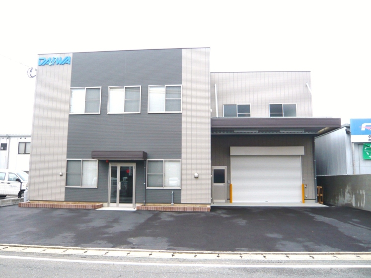 一般的な倉庫兼事務所ですが、外壁にはモダンなタイル調を使用し、