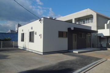 事務所は当社では珍しくSHタイプで切妻のコロニアルで施工致しました。